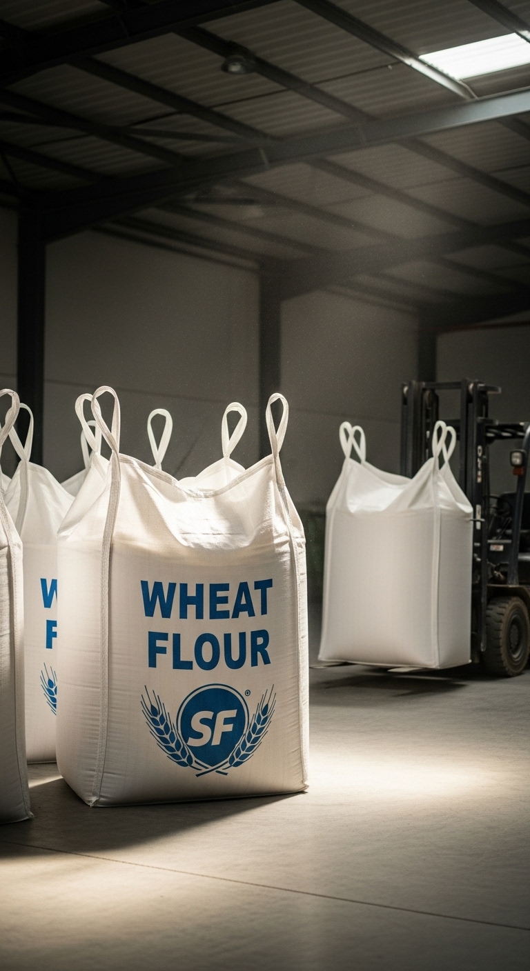 So với bao tải nhỏ hoặc thùng nhựa, bao jumbo chứa bột mì tiết kiệm diện tích đáng kể nhờ thiết kế vuông vức, có thể xếp chồng lên nhau. Điều này giúp tối ưu hóa kho bãi – một yếu tố quan trọng với các xưởng sản xuất đang cần mở rộng quy mô.